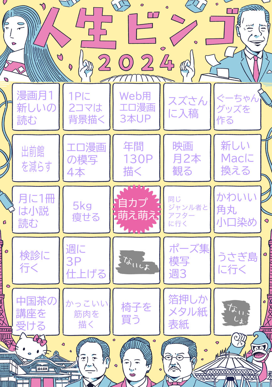 さて去年はじつは人生ビンゴという名の今年の目標を立てていました。